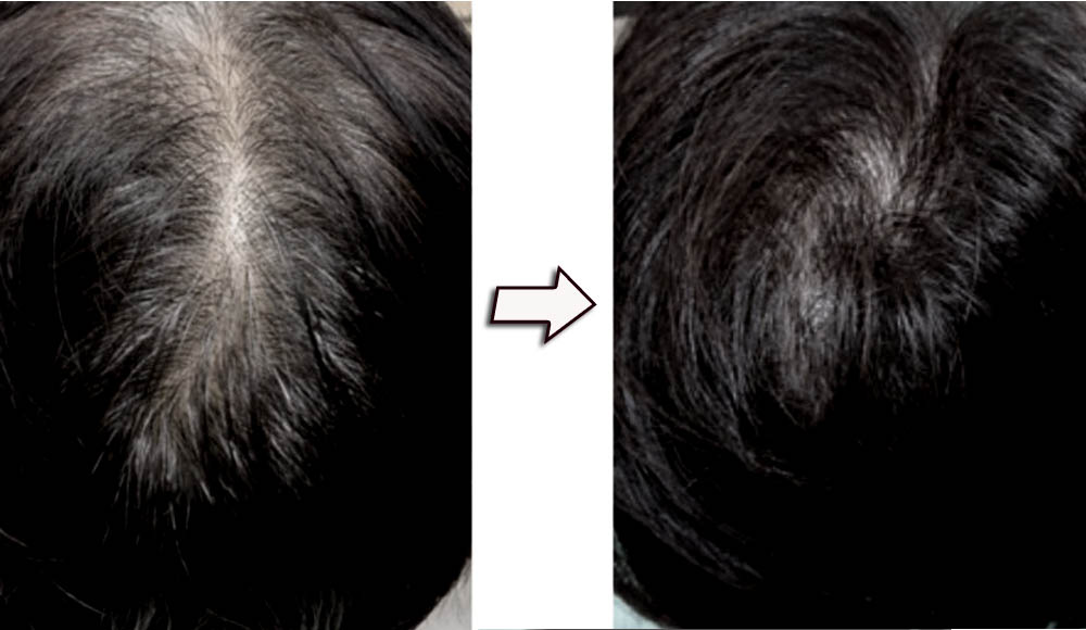 右側は、約5か月後の画像です。明らかに、毛量がふえてます! ちなみに、規定では1日2回ですが、僕は、夜に1回のみです。 シャンプーは1年間していなくて、湯シャンのみです。 決して、頭皮がキレイな状態ではありません。 が、 それでもこんなに効いてます!!! ただし、頭皮マッサージだけは、1日5分×6回くらい、せっせとやっています。